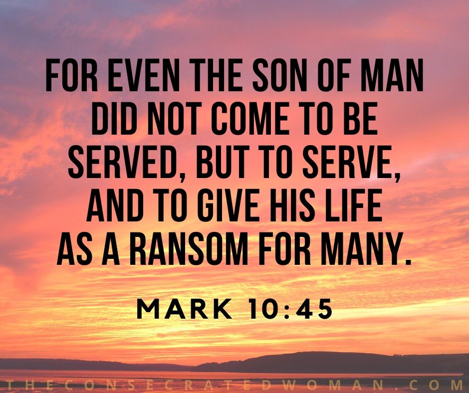 For even the Son of Man did not come to be served, but to serve, and to give his life as a ransom for many.