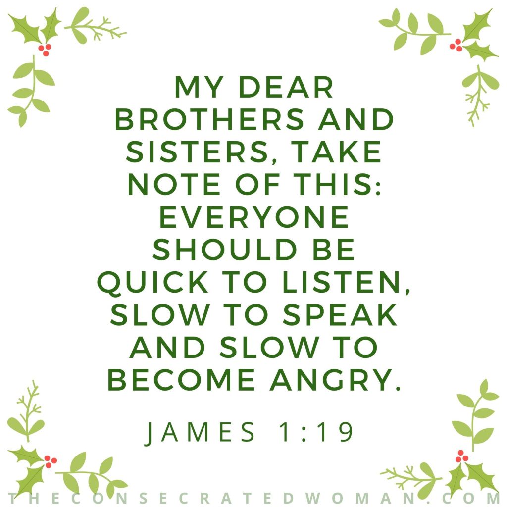 My dear brothers and sisters, take note of this: Everyone should be quick to listen, slow to speak and slow to become angry