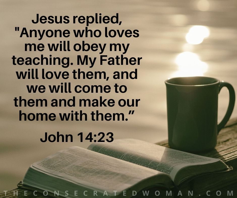 Jesus replied, “Anyone who loves me will obey my teaching. My Father will love them, and we will come to them and make our home with them.”