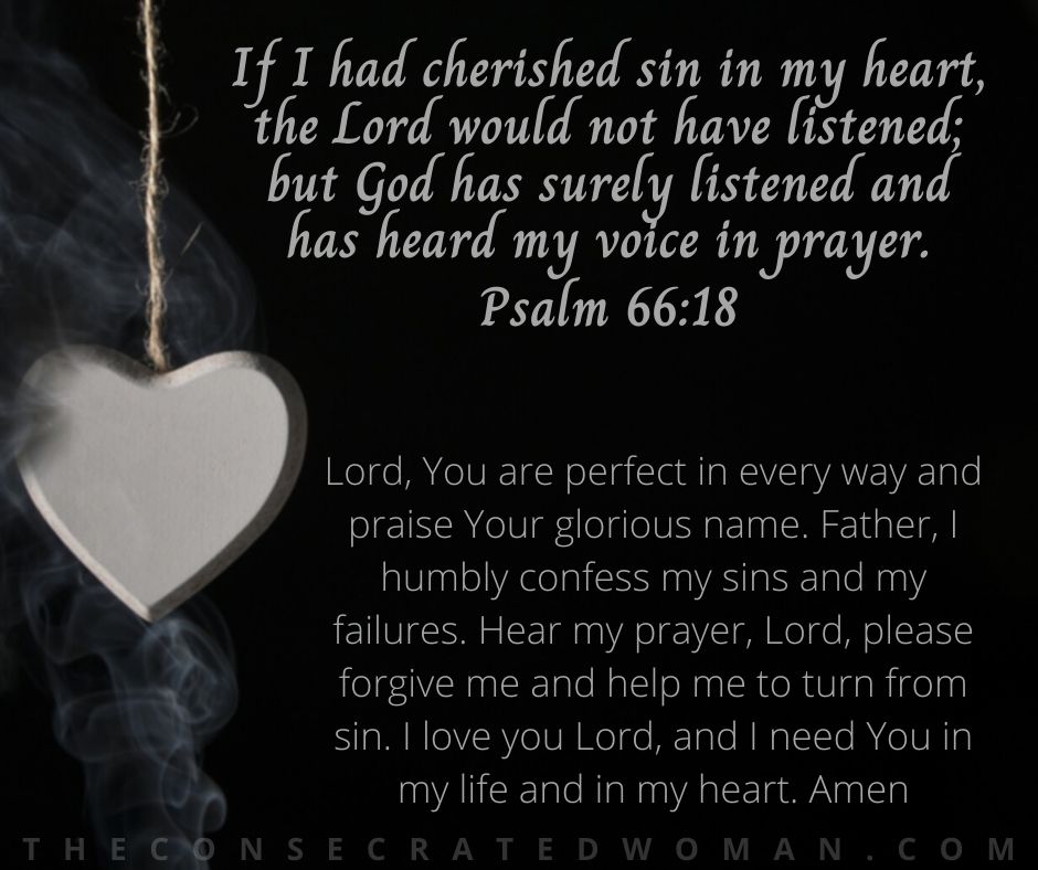 Lord, You are perfect in every way and praise Your glorious name. Father, I humbly confess my sins and my failures. Hear my prayer, Lord, please forgive me and help me to turn from sin. I love you Lord, and I need You in my life and in my heart. Amen