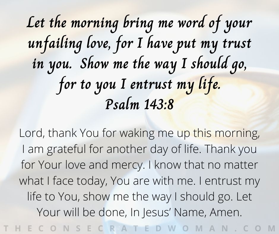 Let the morning bring me word of your unfailing love, for I have put my trust in you. Show me the way I should go, for to you I entrust my life.