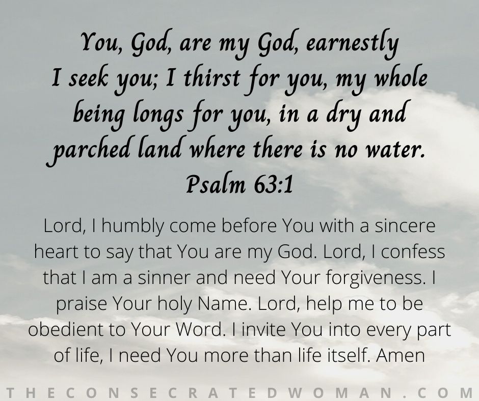 You, God, are my God, earnestly I seek you; I thirst for you, my whole being longs for you, in a dry and parched land where there is no water.