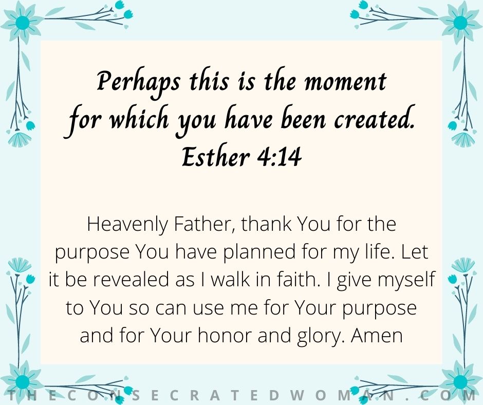 Heavenly Father, thank You for the purpose You have planned for my life. Let it be revealed as I walk in faith. I give myself to You so can use me for Your purpose and for Your honor and glory. Amen