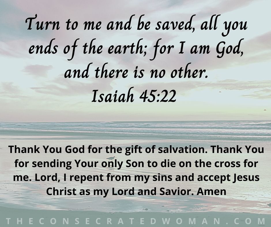 Thank You God for the gift of salvation. Thank You for sending Your only Son to die on the cross for me. Lord, I repent from my sins and accept Jesus Christ as my Lord and Savior. Amen