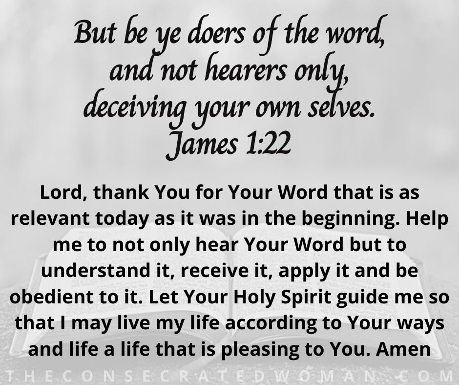 If you are just hearing the Word of God but not applying it to your life and expecting your life to change you’re fooling yourself. That would be like reading a diet book and expecting to lose weight just from reading it. You have to apply it to your life, you have to change your habits and it has to be a way of life not just a Sunday event. Doers of the Word hear it, understand it, receive it and obey it.