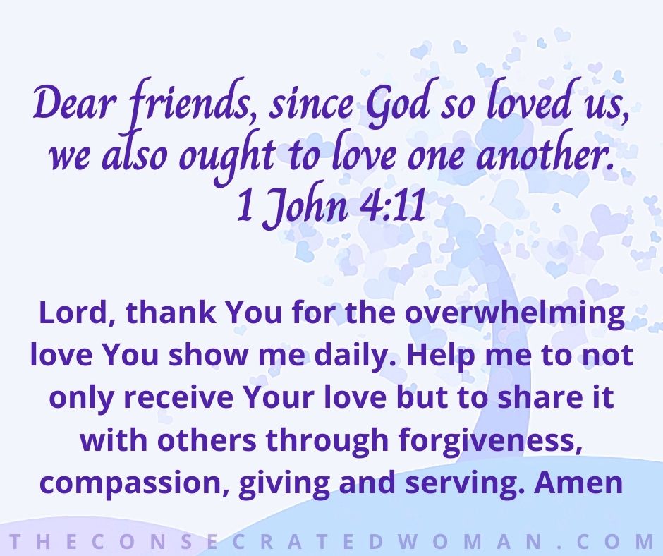 Lord, thank You for the overwhelming love You show me daily. Help me to not only receive Your love but to share it with others through forgiveness, compassion, giving and serving. Amen