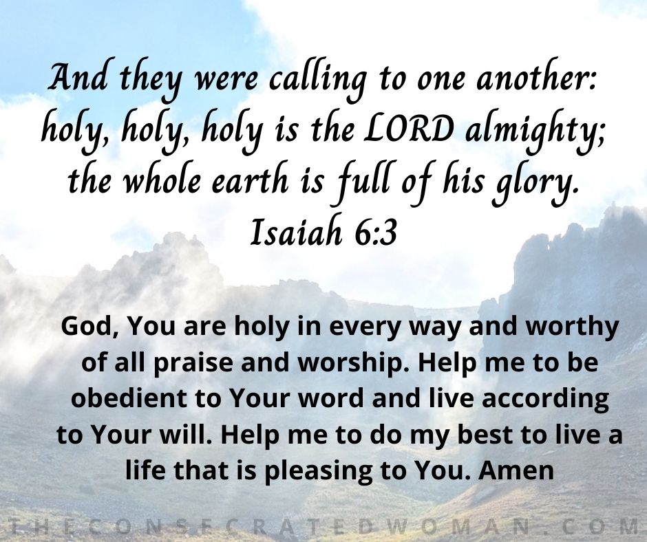 God, You are holy in every way and worthy of all praise and worship. Help me to be obedient to Your word and live according to Your will. Help me to do my best to live a life that is pleasing to You. Amen
