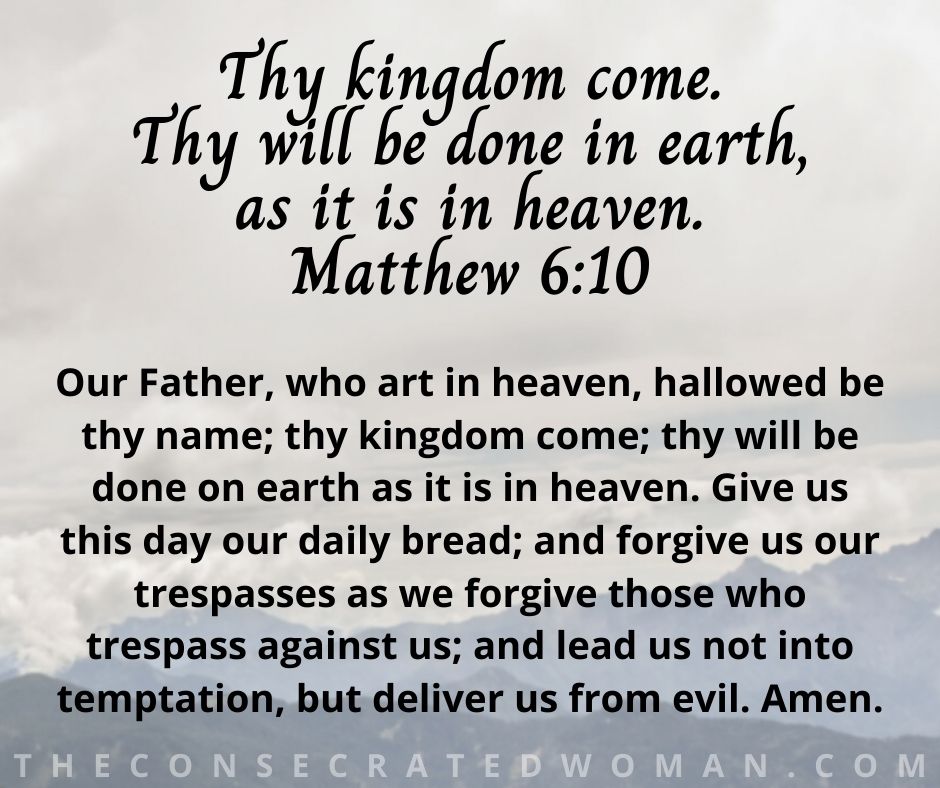 Thy kingdom come. Thy will be done in earth, as it is in heaven.