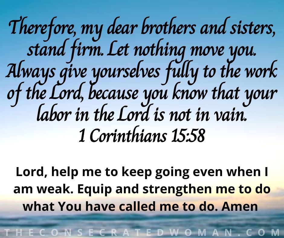 Therefore, my dear brothers and sisters, stand firm. Let nothing move you. Always give yourselves fully to the work of the Lord, because you know that your labor in the Lord is not in vain.