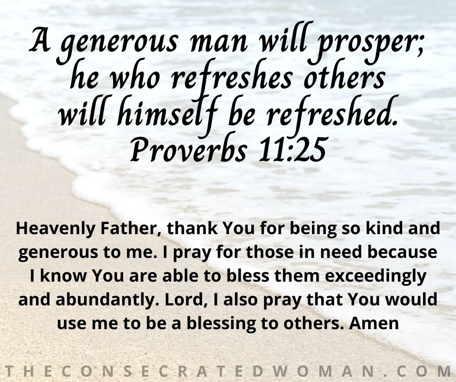 Be kind and generous to others because God has been kind and generous to you. Don’t just pray for others to be blessed, let God use you to bless others as well. When you’re generous to the poor or to someone in need God will always make sure your needs are taken care of and will also bless you spiritually. Trust in God’s promises and help those in need.