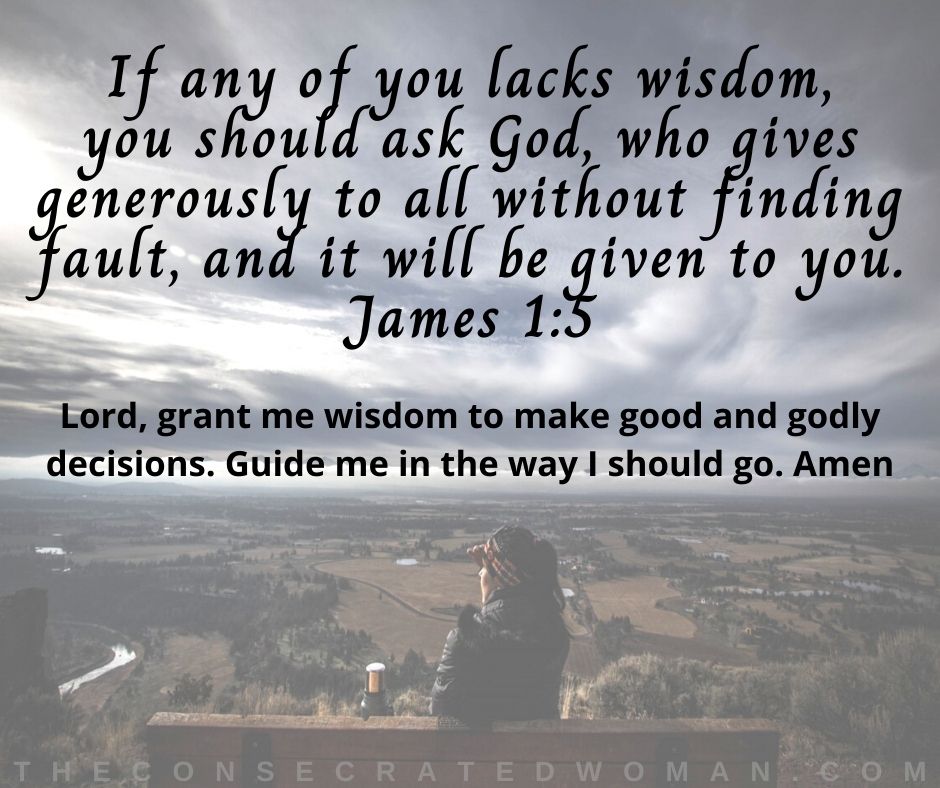 God is the giver all good things including wisdom. We need God’s spiritual wisdom in our everyday lives to navigate this world. When you have a decision to make take it to the Lord in prayer. God is all-knowing, He knows your past, your present and your future. Bring your concerns to Him with sincerity and humility. Ask the Lord for guidance and wisdom to make good and right decisions. He promises that if you come to Him by faith asking for wisdom it will be given to you.