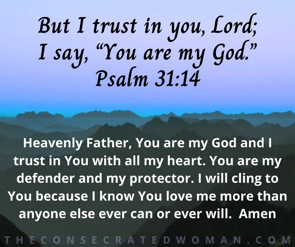 Heavenly Father, You are my God and I trust in You with all my heart. You are my defender and my protector. I will cling to You because I know You love me more than anyone else ever can or ever will. Amen