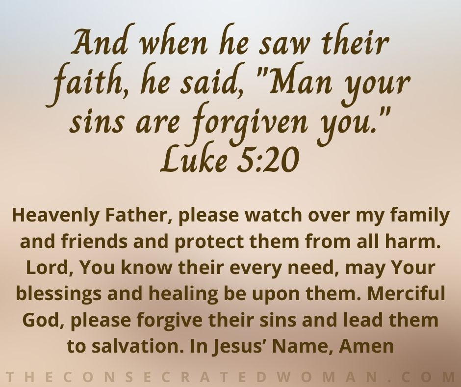 Heavenly Father, please watch over my family and friends and protect them from all harm. Lord, You know their every need, may Your blessings and healing be upon them. Merciful God, please forgive their sins and lead them to salvation. In Jesus’ Name, Amen