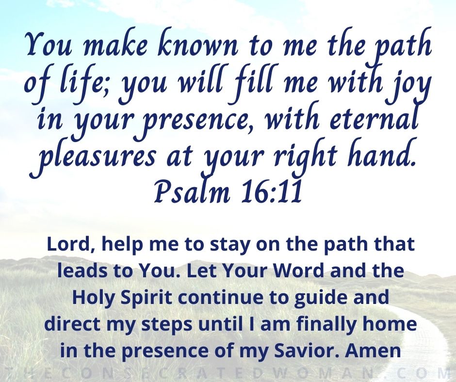 Lord, help me to stay on the path that leads to You. Let Your Word and the Holy Spirit continue to guide and direct my steps until I am finally home in the presence of my Savior. Amen