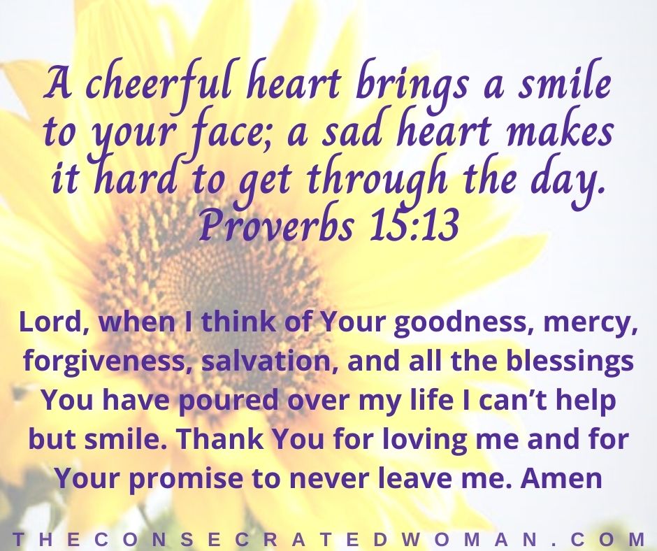 A cheerful heart brings a smile to your face; a sad heart makes it hard to get through the day.