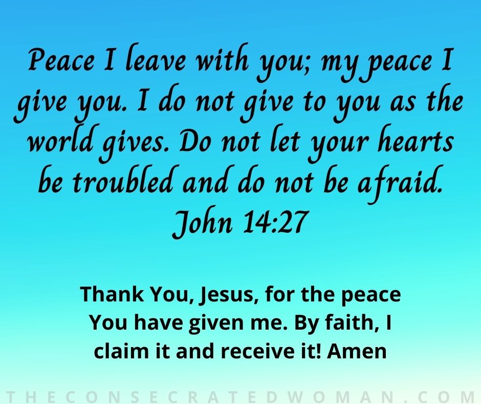 Thank You, Jesus, for the peace You have given me. By faith, I claim it and receive it! Amen