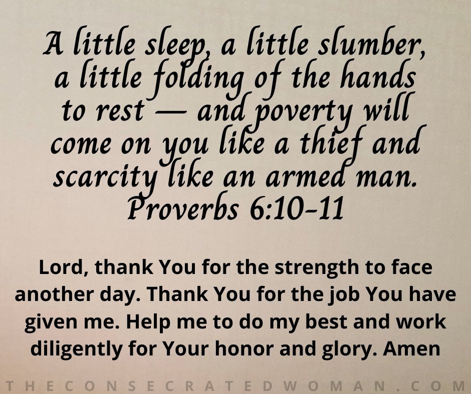 A little sleep, a little slumber, a little folding of the hands to rest — and poverty will come on you like a thief and scarcity like an armed man.