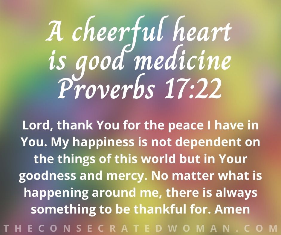 Feeling joy and being cheerful in ordinary things isn’t as hard as it seems. Granted, we are currently going through some of the most difficult times, but when we trust in God with all our heart we are able to keep our spirit from being crushed by the things going on in the world. To be cheerful, focus on the good things in your life and be grateful for what you have. God’s love and mercy give our hearts reason enough to be happy and knowing that our faith is built on the firm foundation of Jesus Christ allows us to be secure no matter what is happening around us. Remember, it’s not happy people who are thankful, it’s thankful people who are happy so let us give thanks to the Lord for in His presence is fullness of joy.