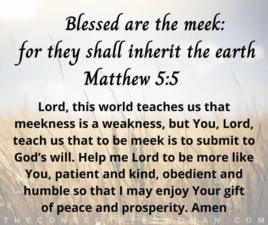 Lord, this world teaches us that meekness is a weakness, but You, Lord, teach us that to be meek is to submit to God’s will. Help me Lord to be more like You, patient and kind, obedient and humble so that I may enjoy Your gift of peace and prosperity. Amen