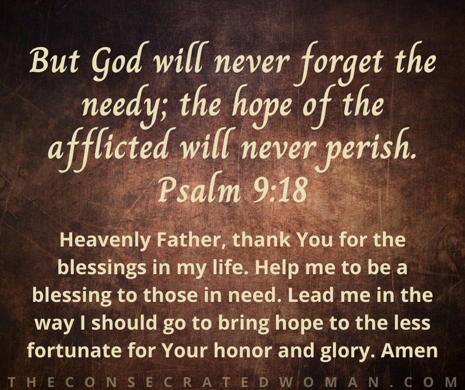 But God will never forget the needy; the hope of the afflicted will never perish.