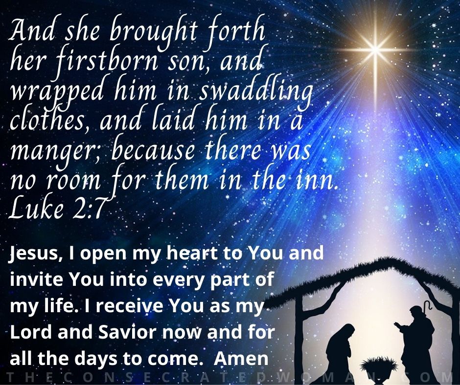 On the very first “Christmas” Jesus was born in a manger because there was no room at the inn. What about this Christmas, is there room for Jesus in your heart? Jesus is knocking on the door of your heart will you let Him in? Or like the inn keeper, will you tell Him you have no room? Open your heart to Jesus and receive the most wonderful gift of all.