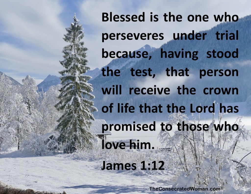 Blessed is the one who perseveres under trial because, having stood the test, that person will receive the crown of life that the Lord has promised to those who love him.