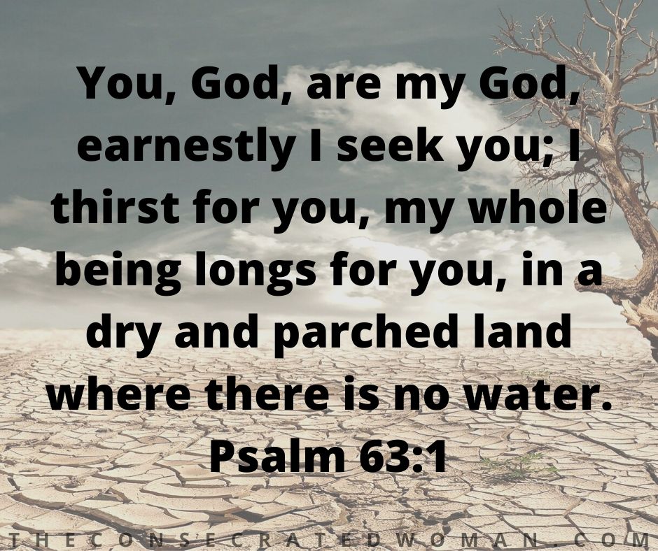 You, God, are my God, earnestly I seek you; I thirst for you, my whole being longs for you, in a dry and parched land where there is no water.