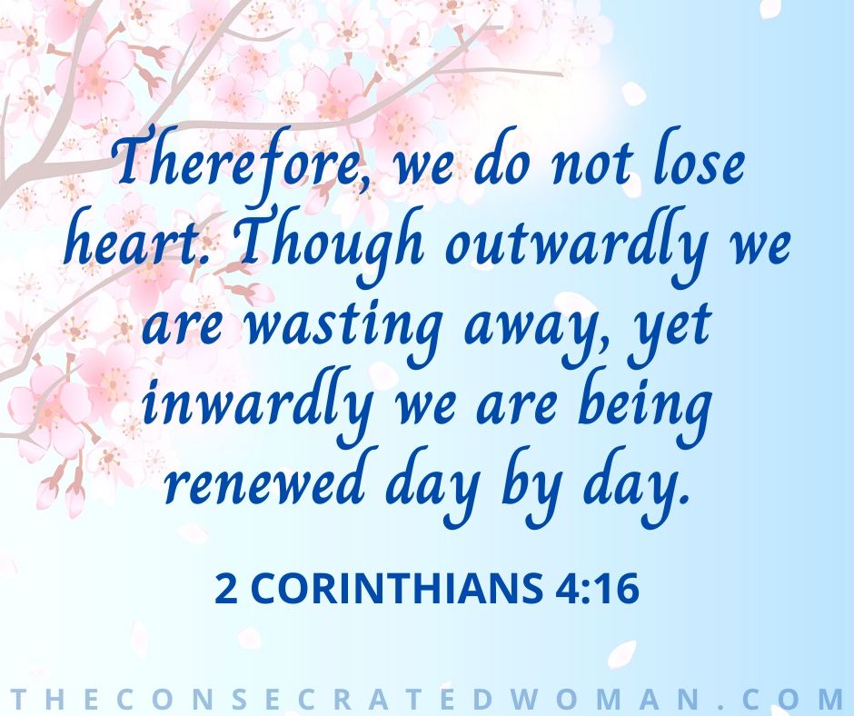 Therefore, we do not lose heart. Though outwardly we are wasting away, yet inwardly we are being renewed day by day.