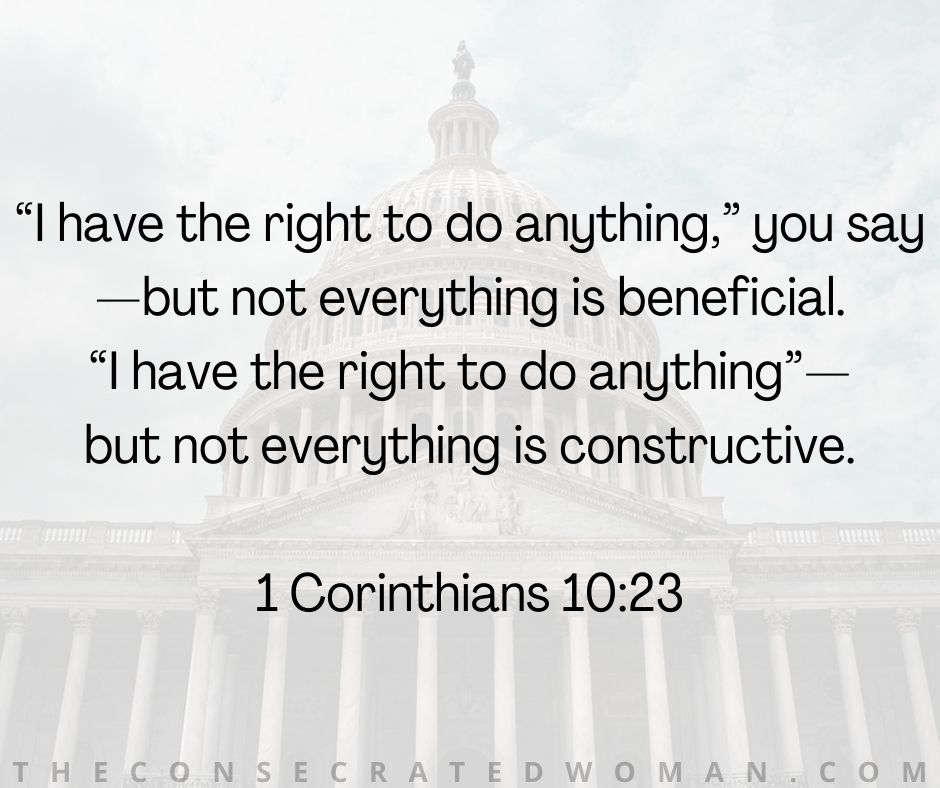 “I have the right to do anything,” you say—but not everything is beneficial. “I have the right to do anything”—but not everything is constructive.