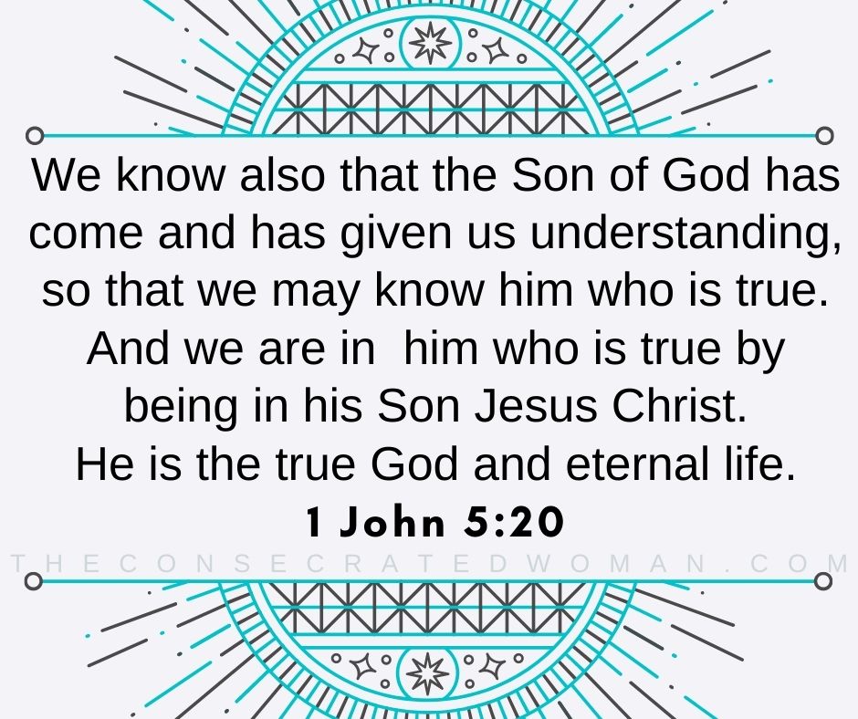 We know also that the Son of God has come and has given us understanding, so that we may know him who is true. And we are in him who is true by being in his Son Jesus Christ. He is the true God and eternal life.
