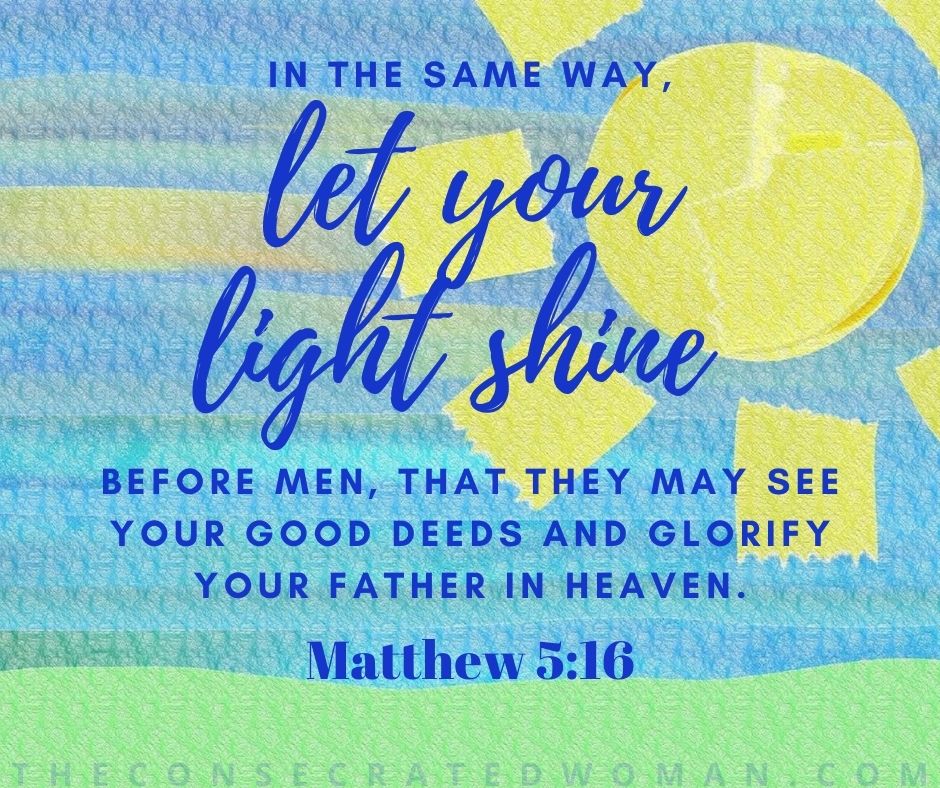 In the same way, let your light shine before men, that they may see your good deeds and glorify your Father in heaven.