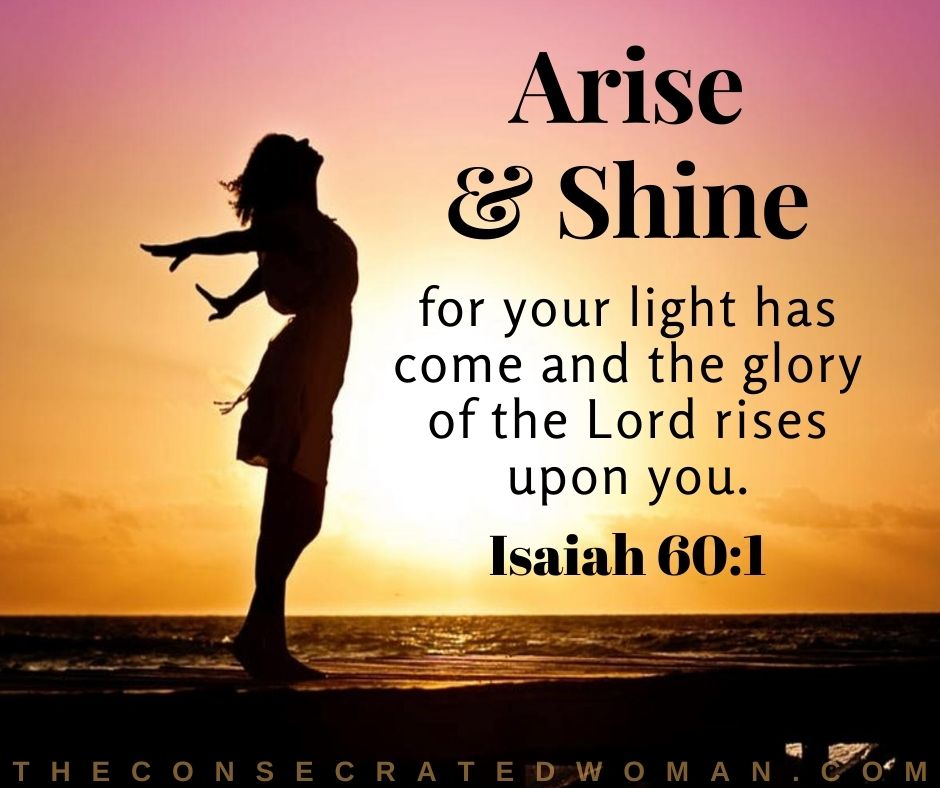 Arise and shine for your light has come and the glory of the Lord rises upon you.