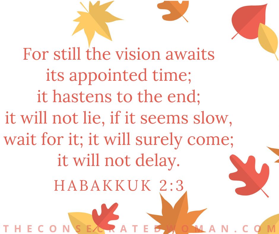 For still the vision awaits its appointed time; it hastens to the end; it will not lie, if it seems slow, wait for it; it will surely come; it will not delay.