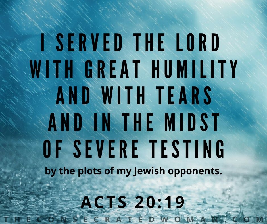 I served the Lord with great humility and with tears and in the midst of severe testing by the plots of my Jewish opponents.