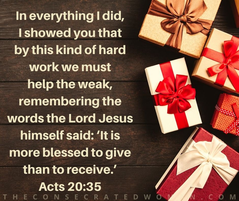 In everything I did, I showed you that by this kind of hard work we must help the weak, remembering the words the Lord Jesus himself said: ‘It is more blessed to give than to receive.’