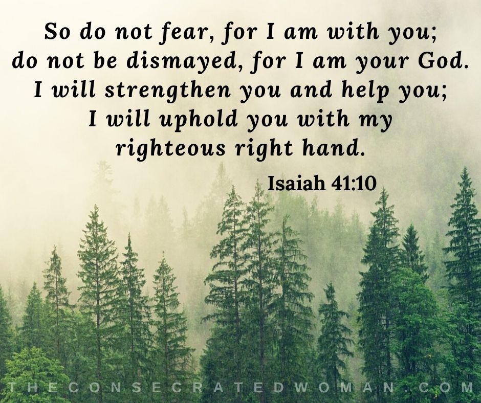 Fear not for I am with you; be not dismayed for I am your God; I will strengthen you, I will help you, I will uphold you with my righteous right hand.