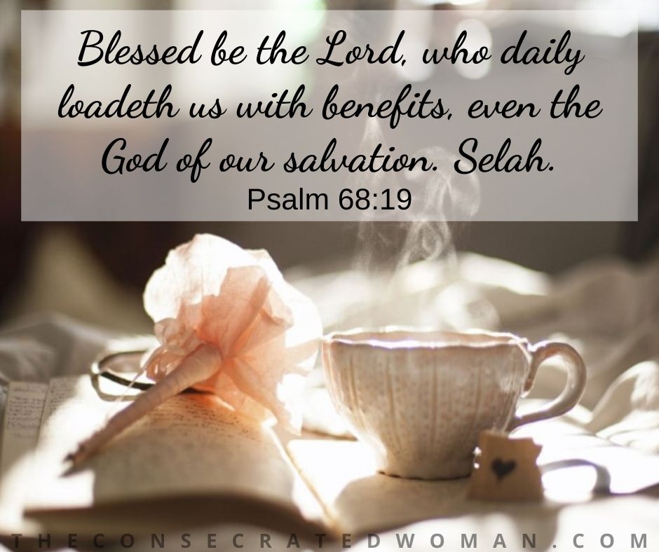 Blessed be the Lord, who daily loadeth us with benefits, even the God of our salvation. Selah.