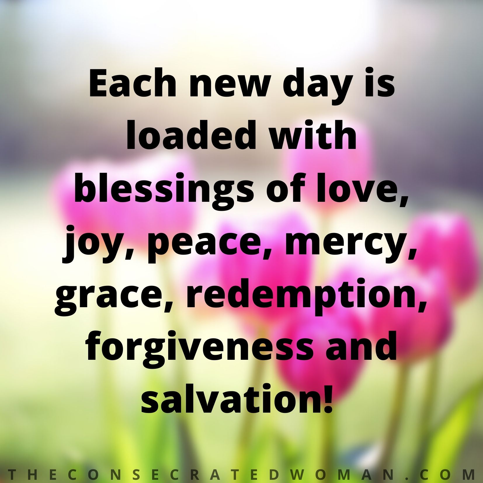 Fruit of the Spirit: Start your day with prayer and receive the spiritual blessings the Lord has in store for you. Each new day is loaded with blessings of Love, Joy, Peace, mercy, grace, redemption, forgiveness, and salvation!
