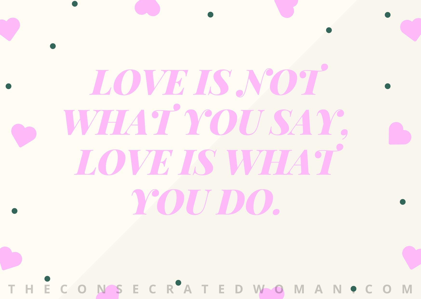 Fruit of the Spirit: Love is more than words, it is action. It is Patience, Kindness, Goodness, Faithfulness, Gentleness and Self-Control. Let’s not love with just words but with action.