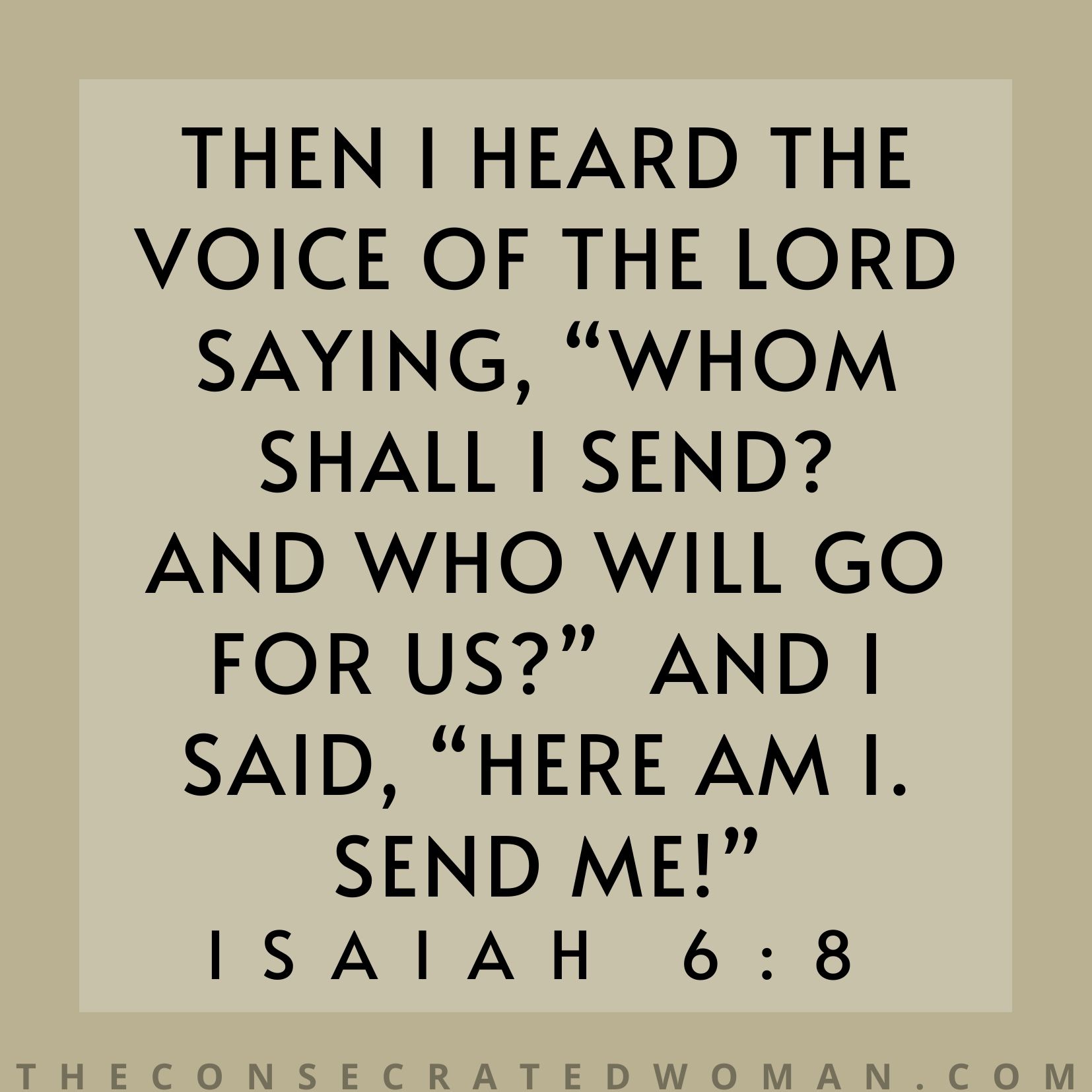 Then I heard the voice of the Lord saying, “Whom shall I send? And who will go for us?” And I said, “Here am I. Send me!”