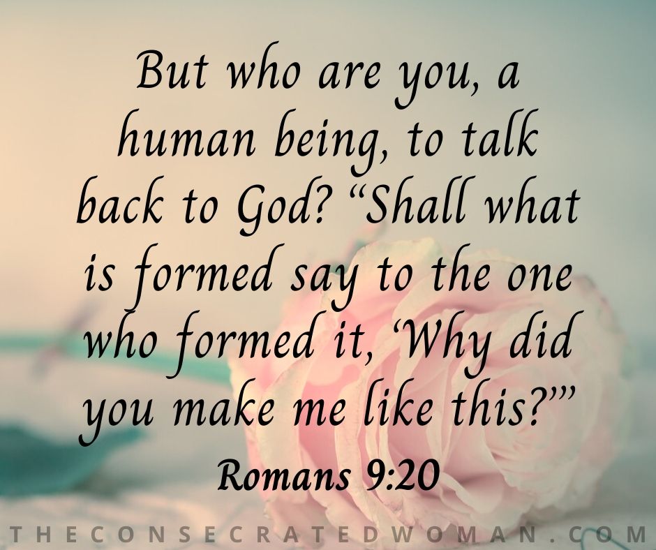 But who are you, a human being, to talk back to God? “Shall what is formed say to the one who formed it, ‘Why did you make me like this?’”