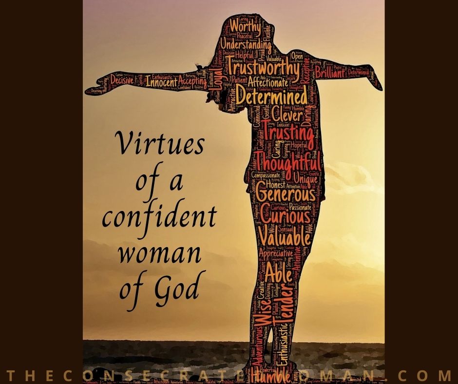 Fruit of the Spirit: The characteristics of a confident woman of God include strength, honor, Peace, Joy, Love, Patience, Kindness, Goodness, Faithfulness, Gentleness, and Self-Control.