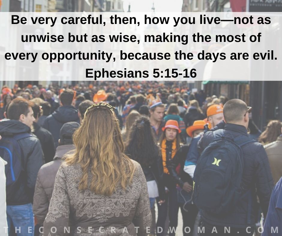 Be very careful, then, how you live—not as unwise but as wise, making the most of every opportunity, because the days are evil.