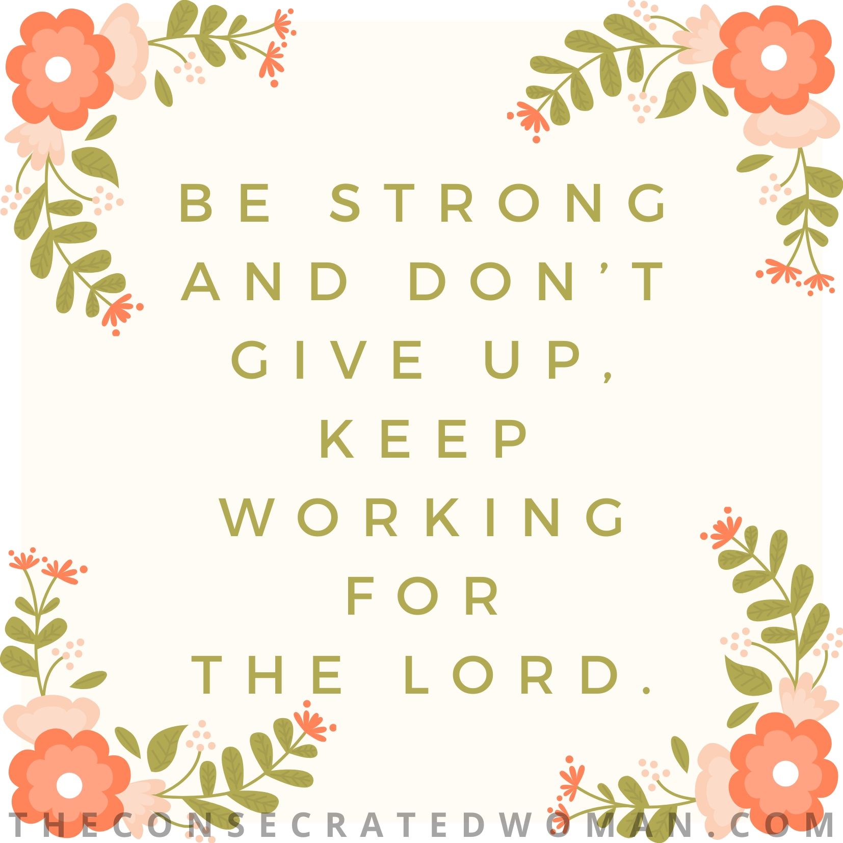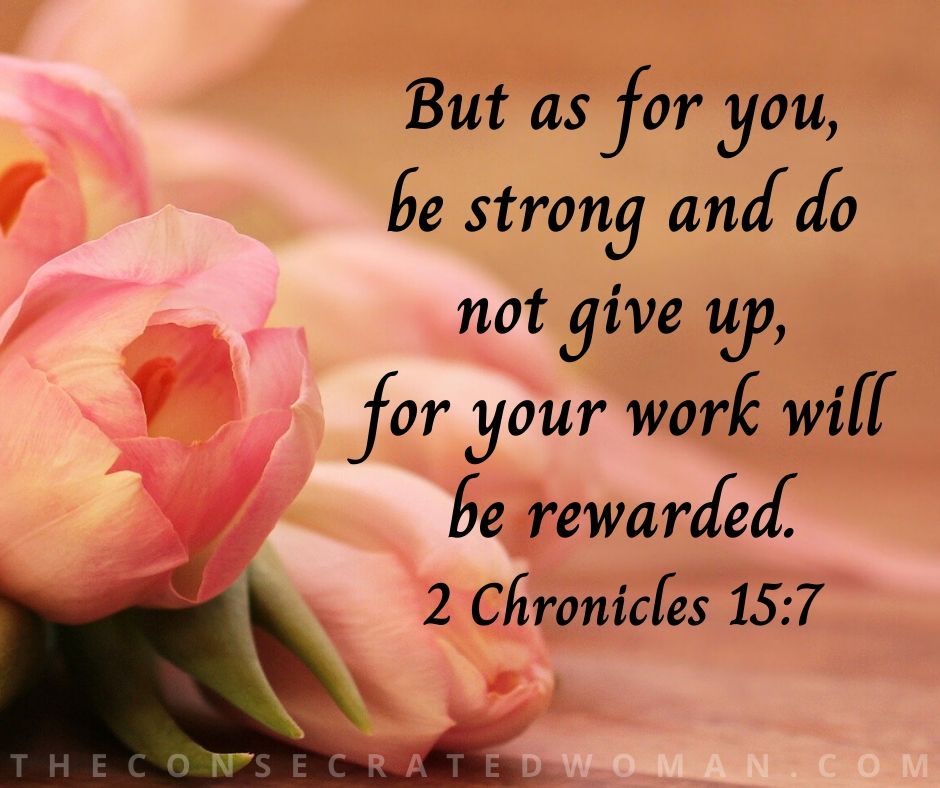 But as for you, be strong and do not give up, for your work will be rewarded.