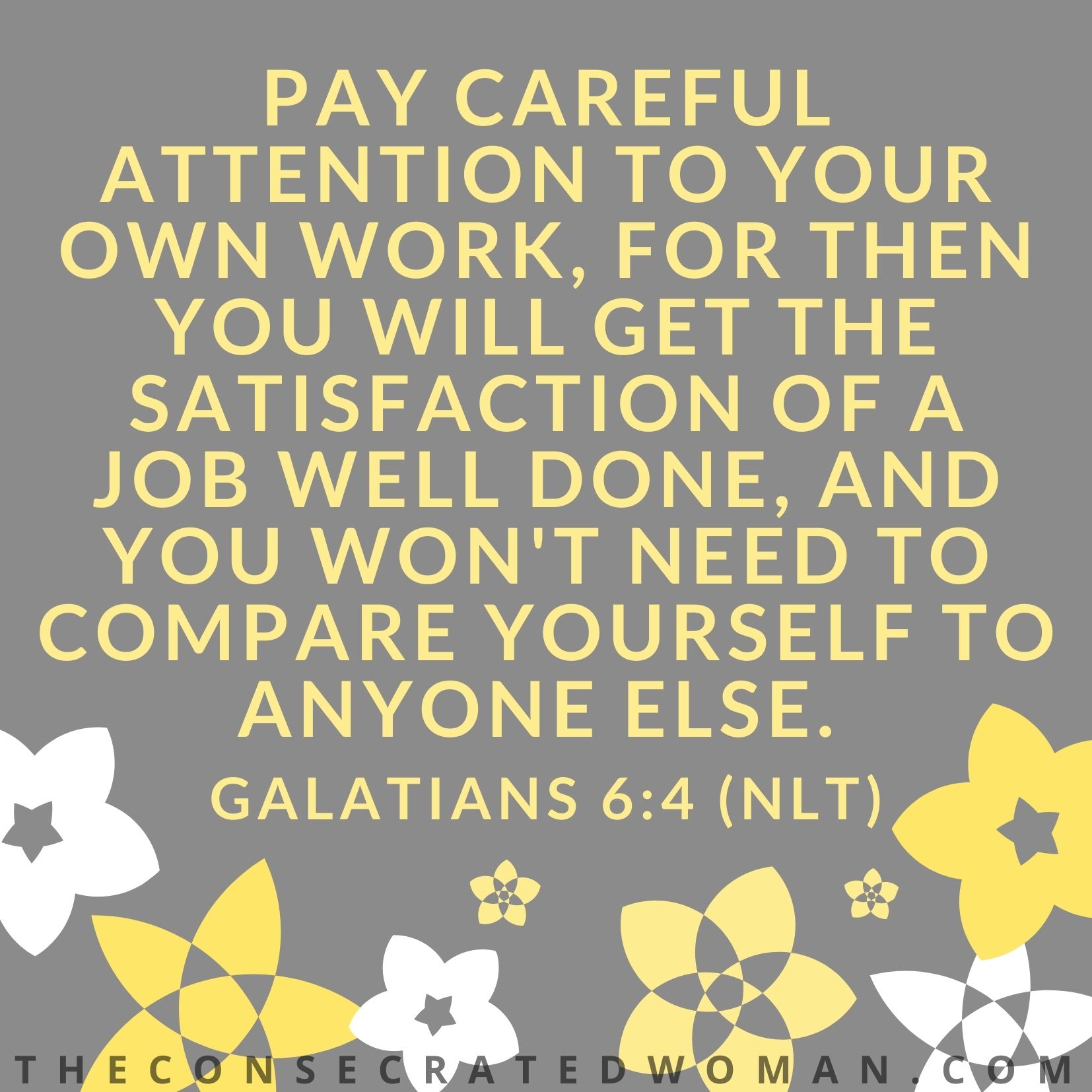 Pay careful attention to your own work, for then you will get the satisfaction of a job well done, and you won’t need to compare yourself to anyone else.
