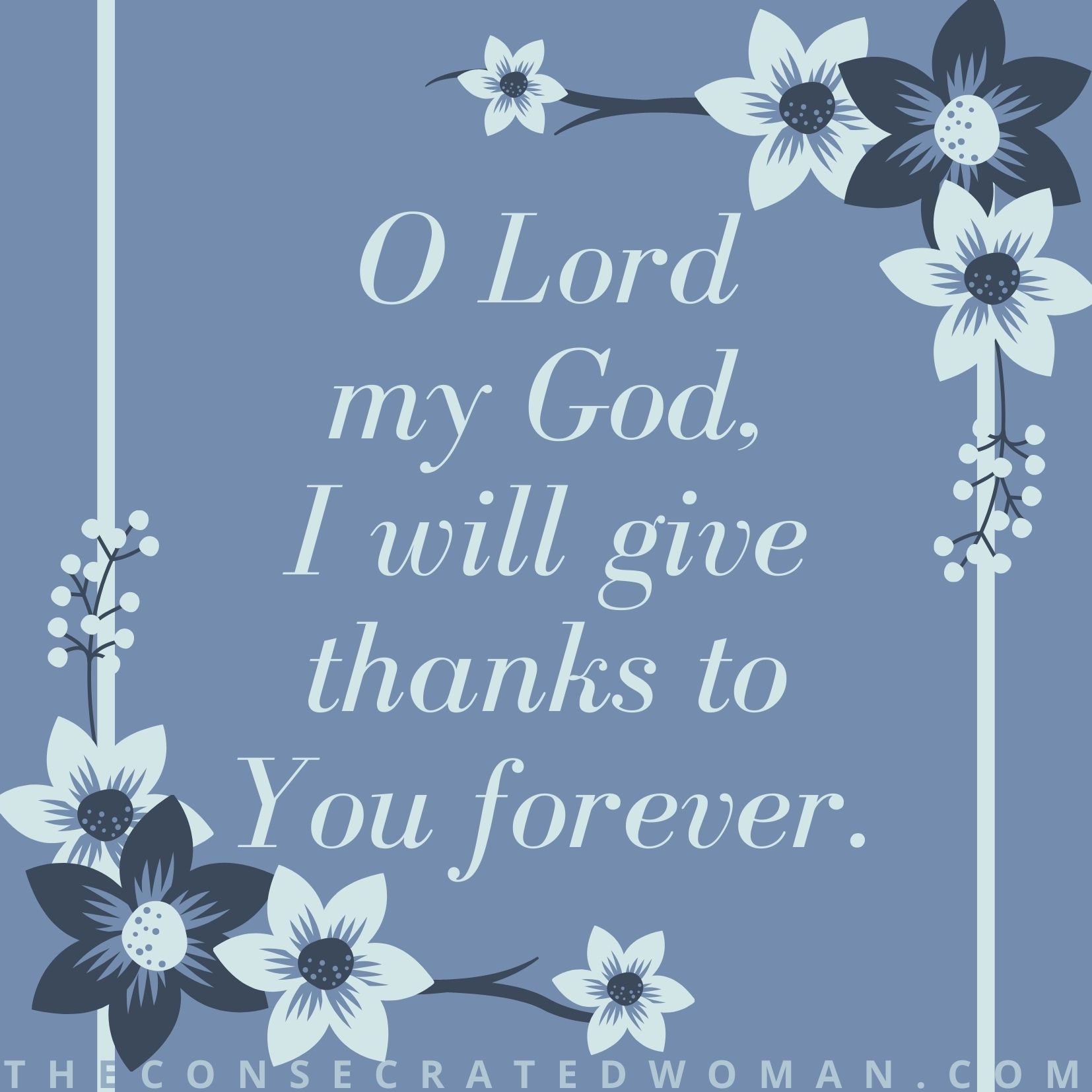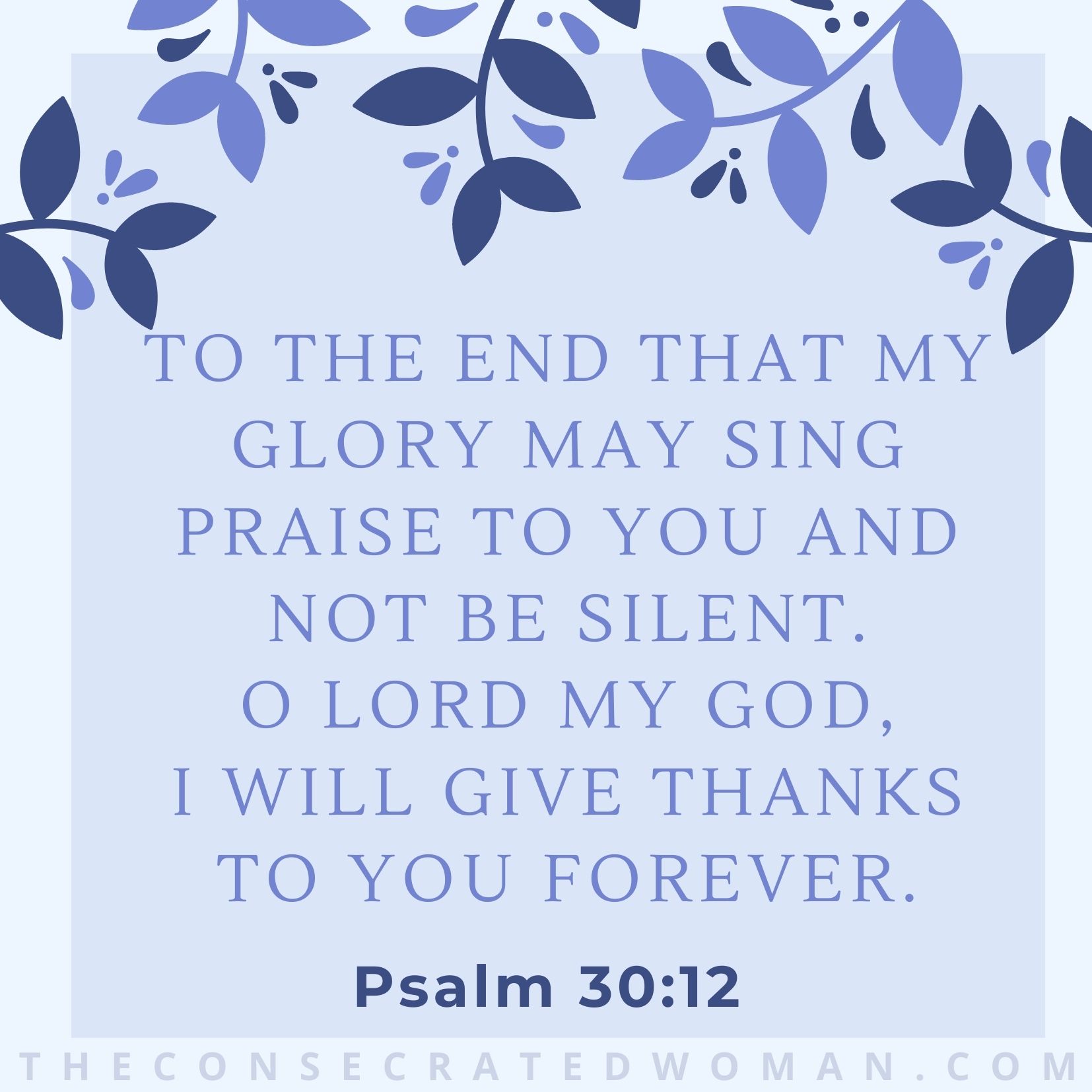 To the end that my glory may sing praise to You and not be silent. O Lord my God, I will give thanks to You forever.