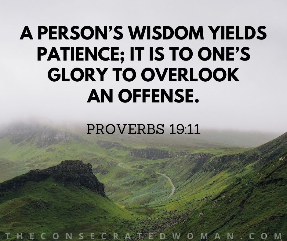 A person’s wisdom yields patience; it is to one’s glory to overlook an offense.