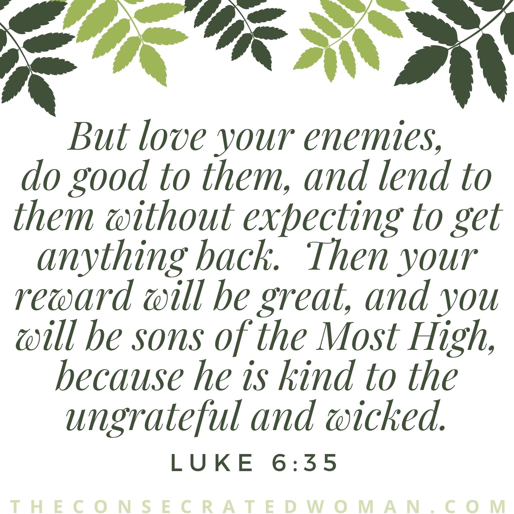But love your enemies, do good to them, and lend to them without expecting to get anything back. Then your reward will be great, and you will be sons of the Most High, because he is kind to the ungrateful and wicked.