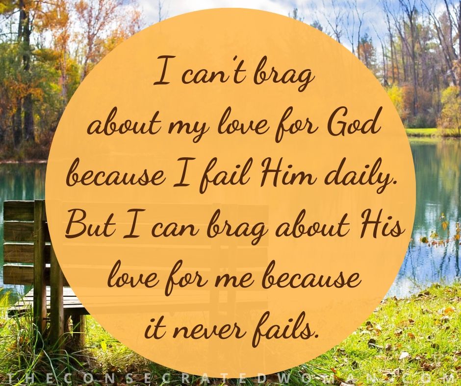 Fruit of the Spirit: We cannot boast about anything we have because as believers, we know that every good gift comes from our Father above. Everything we have and everything we are is because of God’s unfailing Love, mercy and saving grace. One thing we can boast about is knowing the Lord. We can boast about His Kindness, justice and righteousness. We can brag about the Love, Joy, and Peace we now how have because of His presence in our lives.