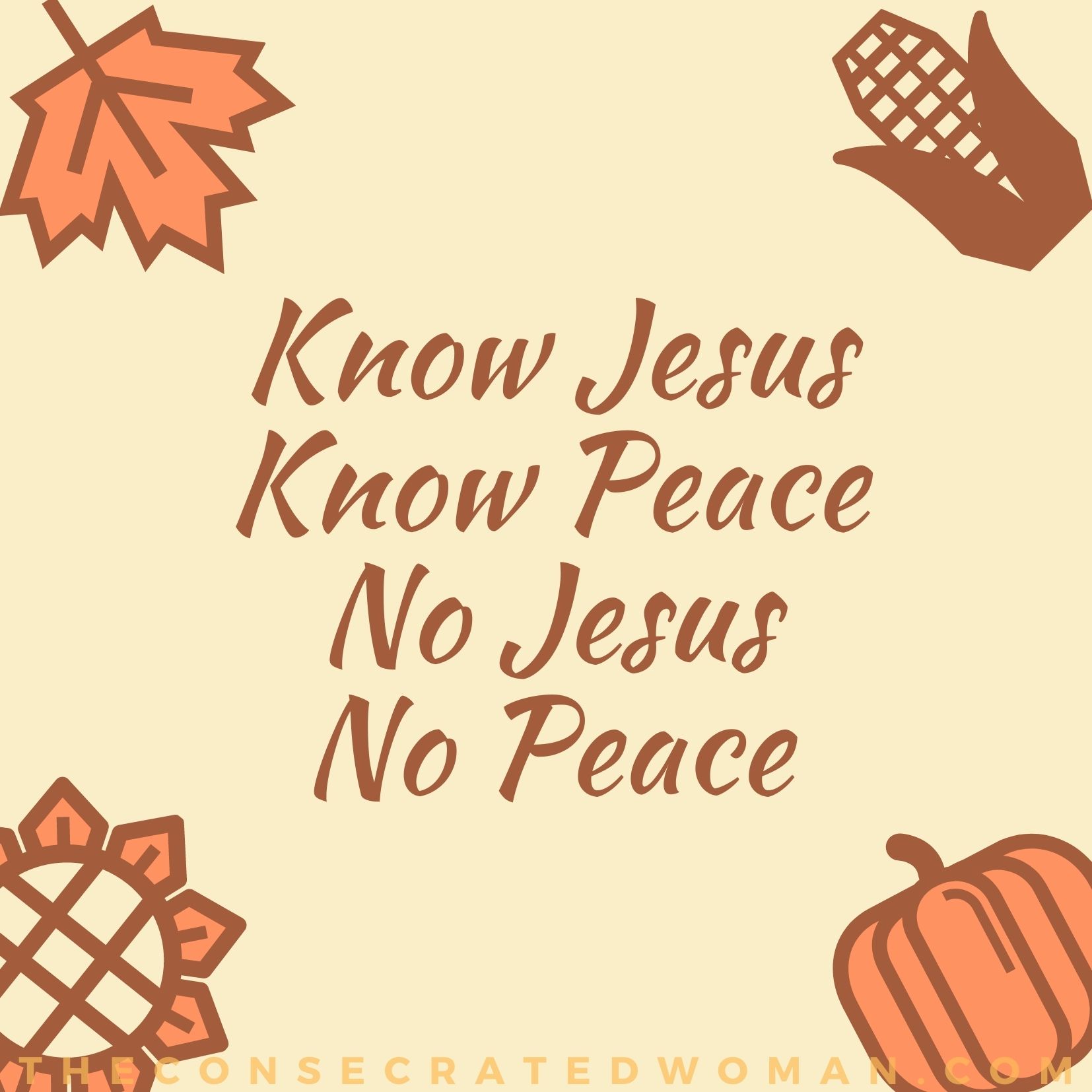 Fruit of the Spirit: Thank the Lord for the Peace that comes from having a personal relationship with Him. The closer you get to Him the more you start to see how His Peace changes your heart. Because you grow to trust in Him with all your heart, you can live at Peace no matter what is happening around you because a life intimately connected with Jesus will be reflected in your attitude and life.